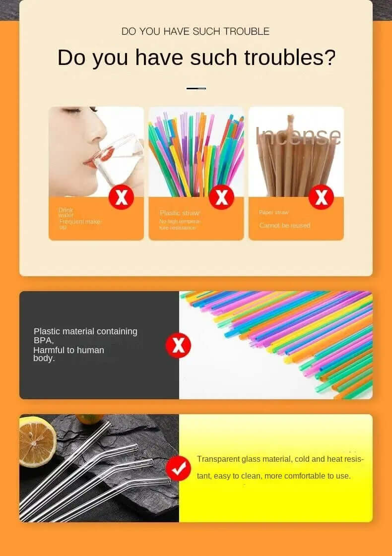 • Eco-Friendly Alternative: Reduce plastic waste and protect the environment with this reusable glass straw set.