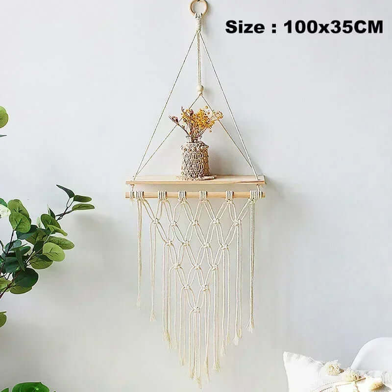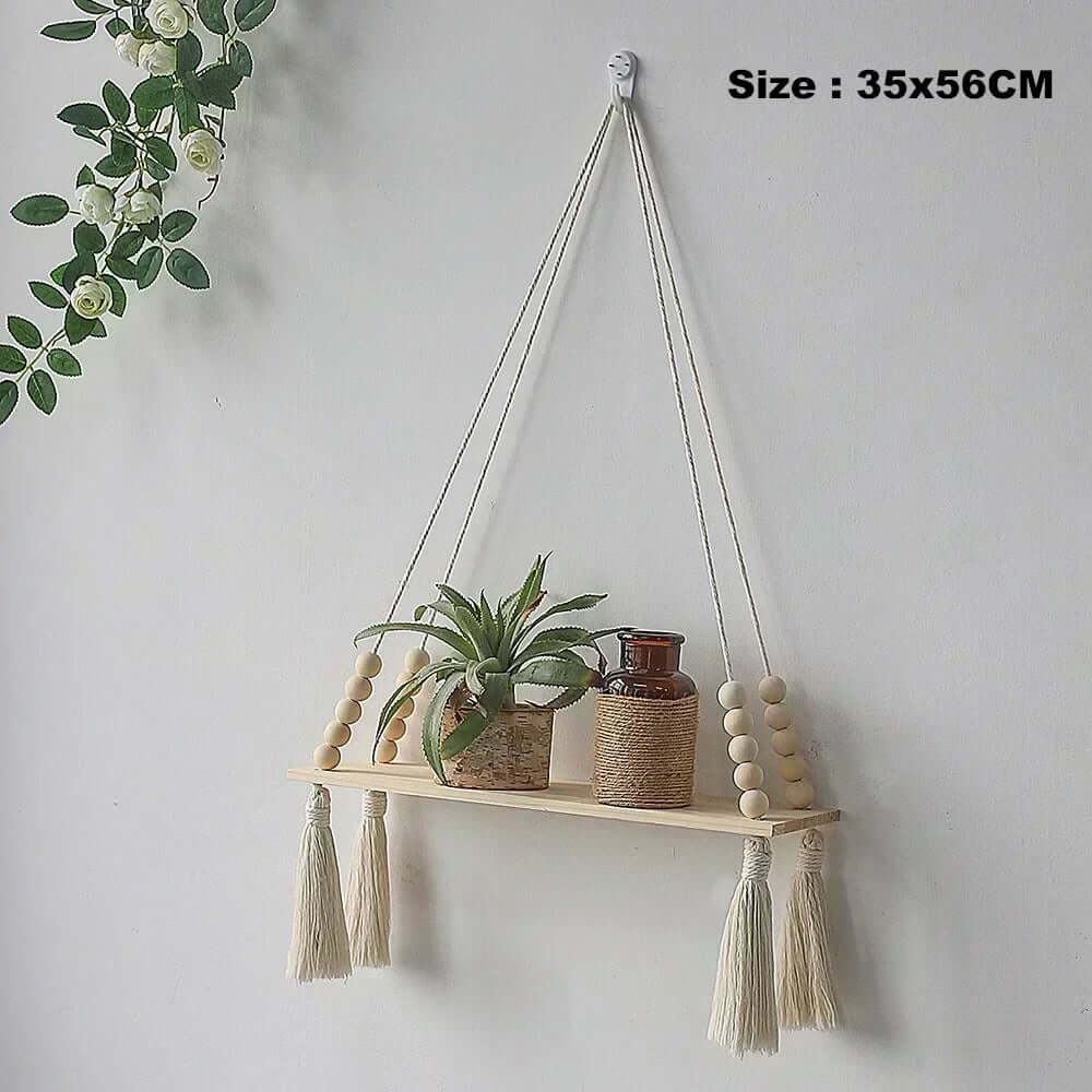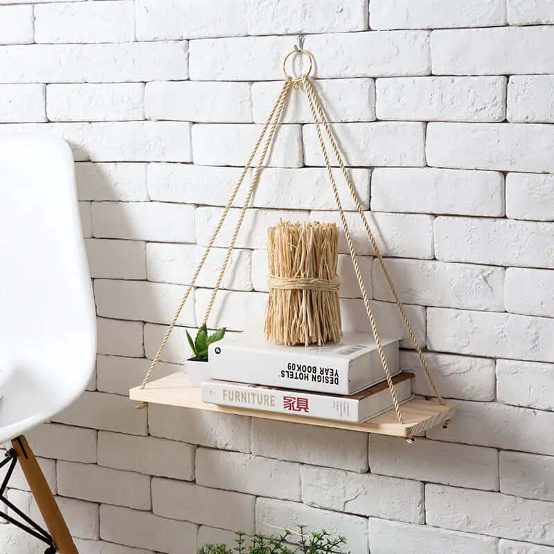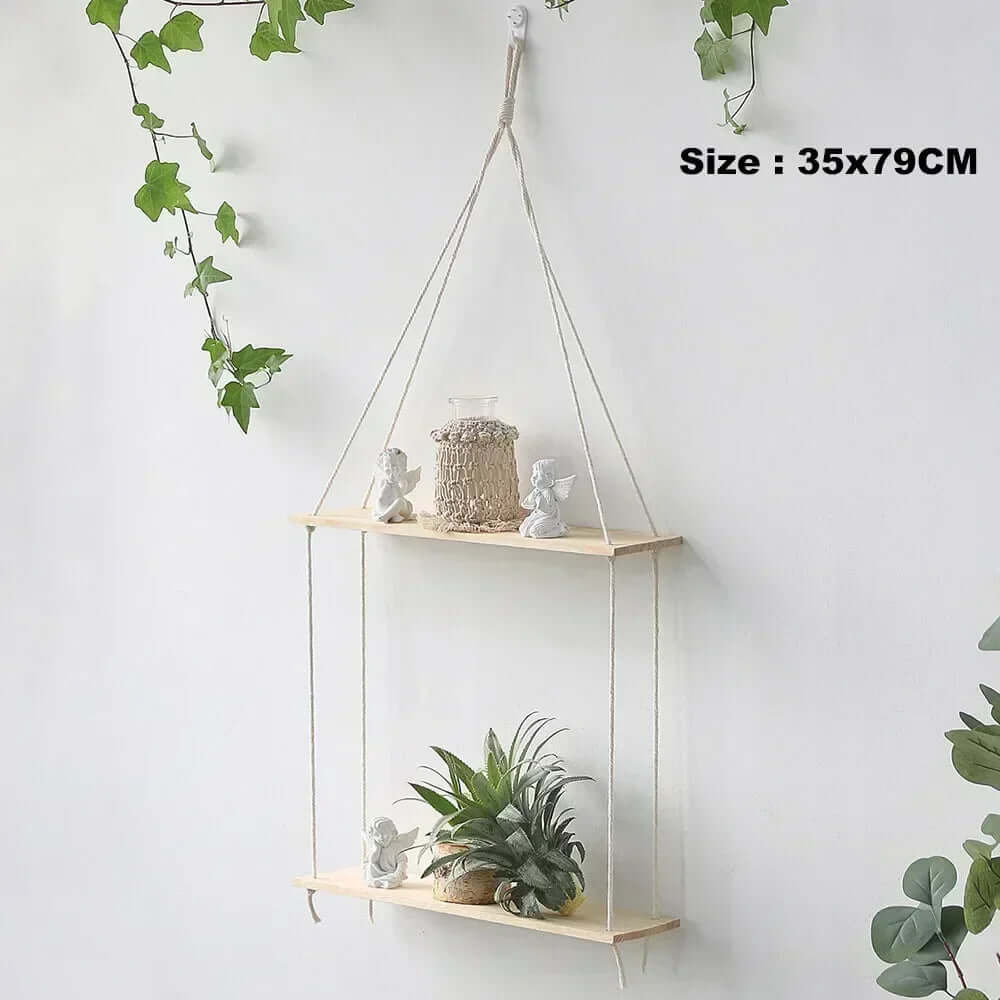 Add a touch of nature and elegance to your home decor with our Nordic Wooden Rope Swing Wall Hanging Plant Pot Tray. This charming floating wall shelf is designed to showcase your favorite plants and decorative items, making it an ideal choice for anyone looking to enhance their living space with simplicity and style.